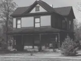 Local merchant Harry Tolleth built the house in 1907 as a belated wedding present for his new wife, Della. It was a Sears, Roebuck and Company plan from the 1905 catalog. The house was constructed during a period of rapid expansion in the village, but the family says the lumber was shipped to Meridian from the family lumber business in Nebraska. Described as a stylistically transitional building, the house has features of the late-19th-century Queen Anne style and the early-20th-century emerging aesthetic style that emphasized simplicity in design and ornamentation. One of Meridian’s first homes to boast electricity and central heating, it remains an example of a spacious and early middle class frame house, with hallmarks of a socially upward merchant reflecting security and stability to his clients and the community. Listed on the National Register of Historic Places in 1997, it is located at 134 East State Avenue on the northwest corner of State and East Second Street.
