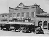 Built in 1913 originally for Harrell & Pfaffle Co. with commercial space on the first floor and apartments on the second floor, it was a very modern building for its time. The second floor was also home to a public bathing room. A visitor from out of town could rent a bathing room to clean up before the Saturday night dance. Early retail tenants were Struves and Garretts succeeded by the Cash Bazaar in 1933. Most recently it housed the Ground Floor, an incubator for local small businesses.