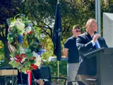 As I mentioned this morning, we gathered in Meridian at the Rock of Honor located in Kleiner Park. This memorial is a lasting legacy and contains the 63 names of those from Meridian who lost their lives in service to our country, and each name was read for our community to hear so that we may remember and pay our respects.